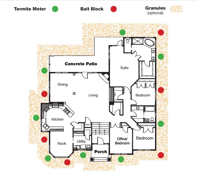 Choosing the placement of the termite meter is decided by where you are most concerned about subterranean termite activity, according to your house layout and construction.